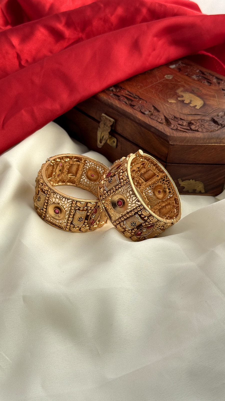 Carved Filigree Gold Bangles