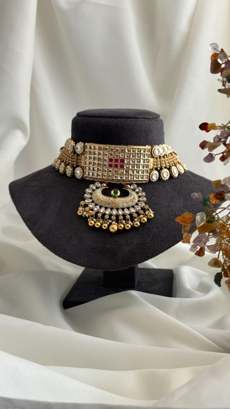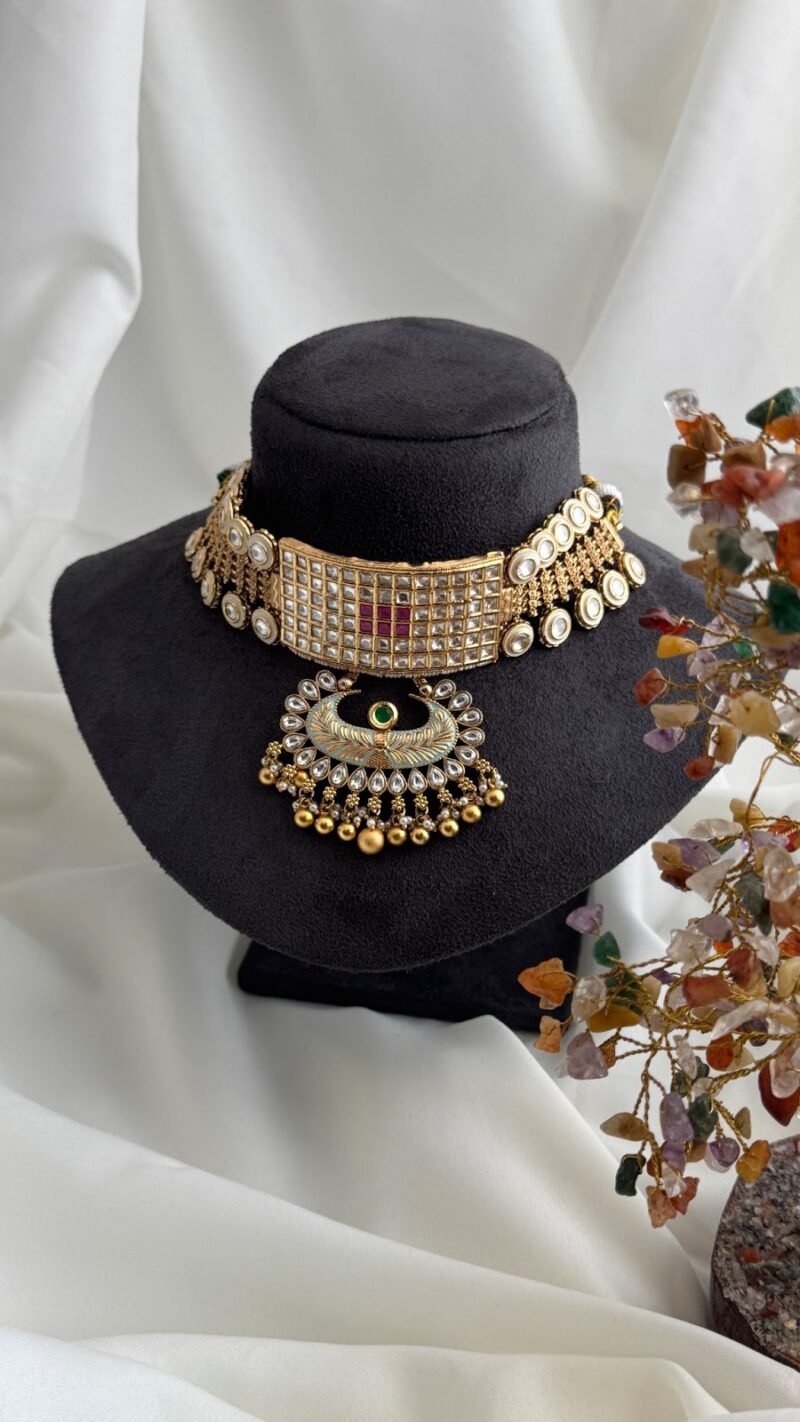 Be the first to review “Kundan Choker Necklace with Detachable Pendant.” Cancel reply